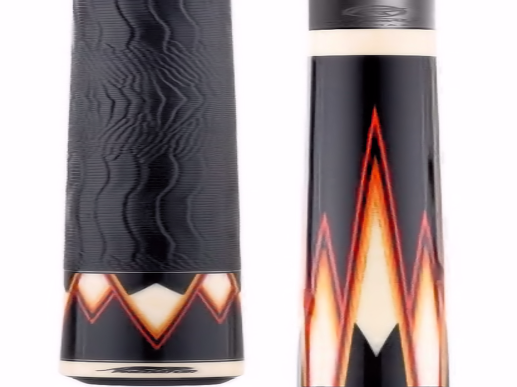 Predator Truesplice 16 Ebony Forearm with Red, Orange and Yellow Veneers Pool Cue with Lizard Wrap - Radial